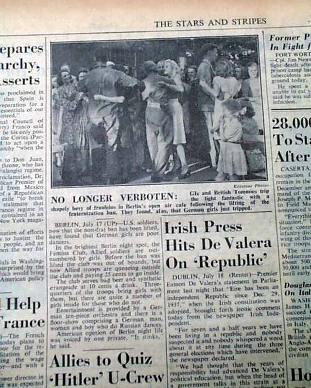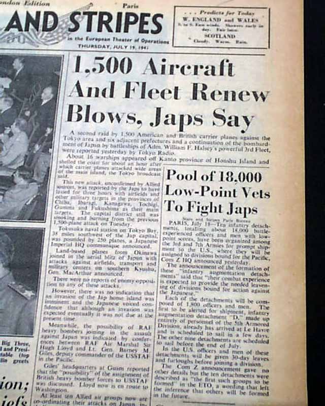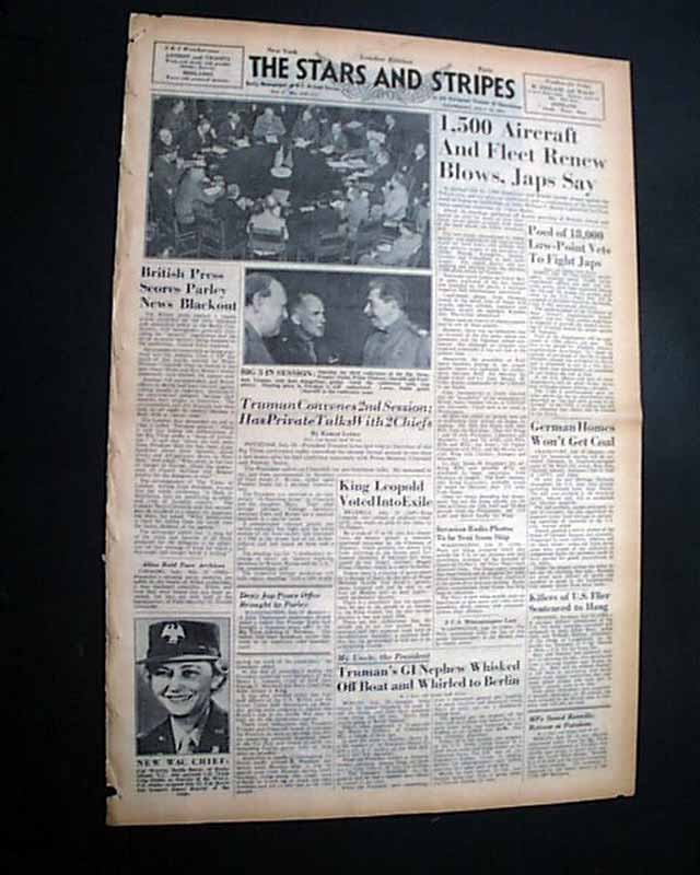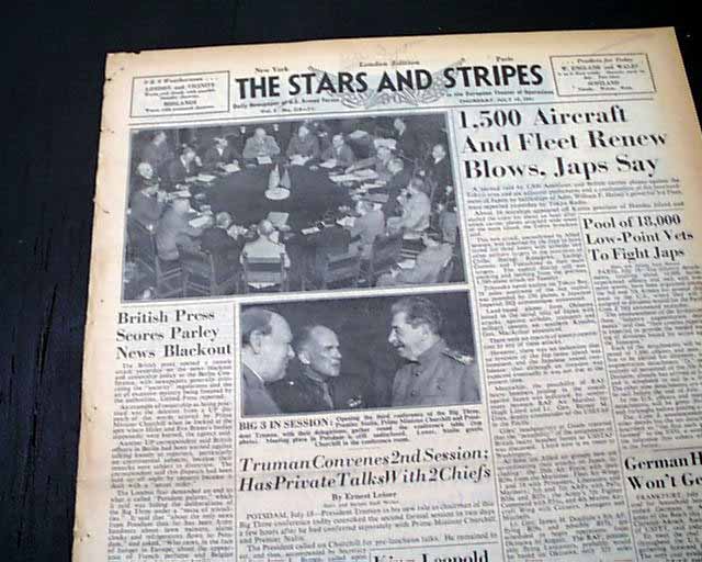 STARS & STRIPES, London Edition, July 19, 1945 This was the: "Daily Newspaper of U.S. Armed Forces in the European Theater of Operations" as noted in the masthead. Penciled at the top is "War Dept."
