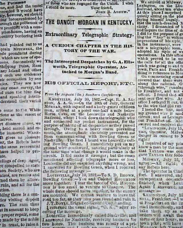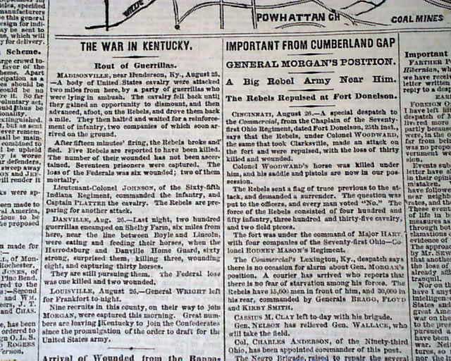 One column heads as well including: "General Morgan's Position" "A Big Rebel Army Near Him" "The Guerrilla War In Kentucky" "Repulse of Rebels at Fort Donelson" and more.