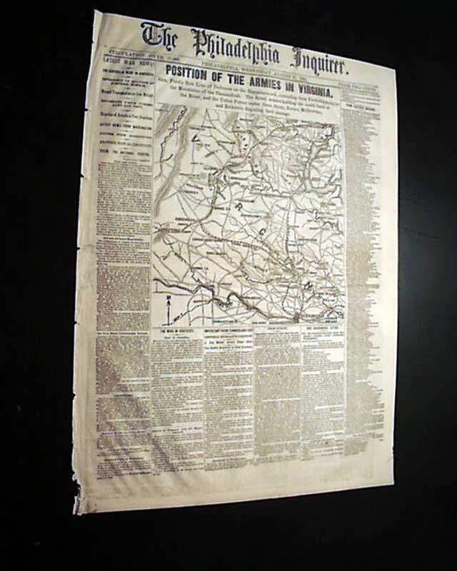 The front page is dominated by a nice & very detailed map headed: "POSITION OF THE ARMIES IN VIRGINIA" with further particulars.