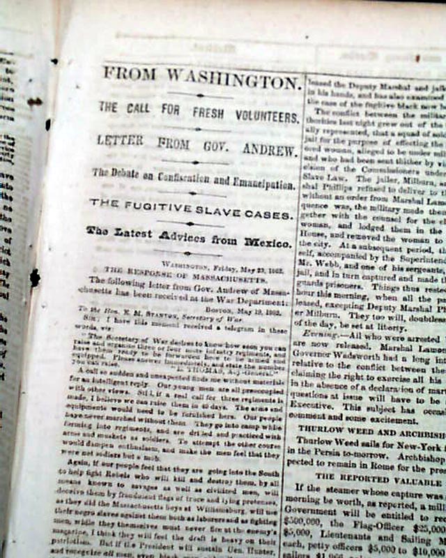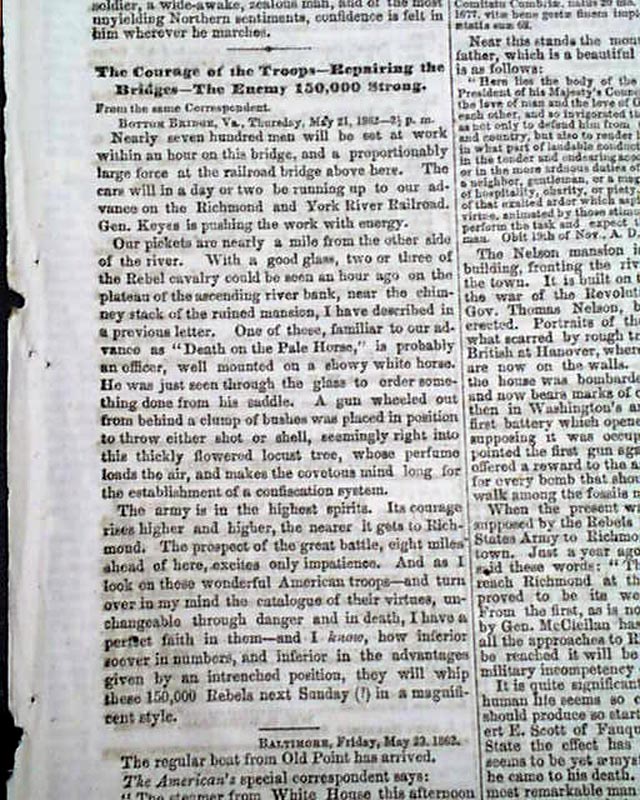 NEW YORK TRIBUNE, May 24, 1863 Among the front page column heads on the Civil War are: "Official War News" "McClellan Across the Chickahominy" "Preparations For An Attack" "A Famine In Virginia" "Beauregard At Richmond" "Rebels Want a Ten Day's 'Armistice" and more.