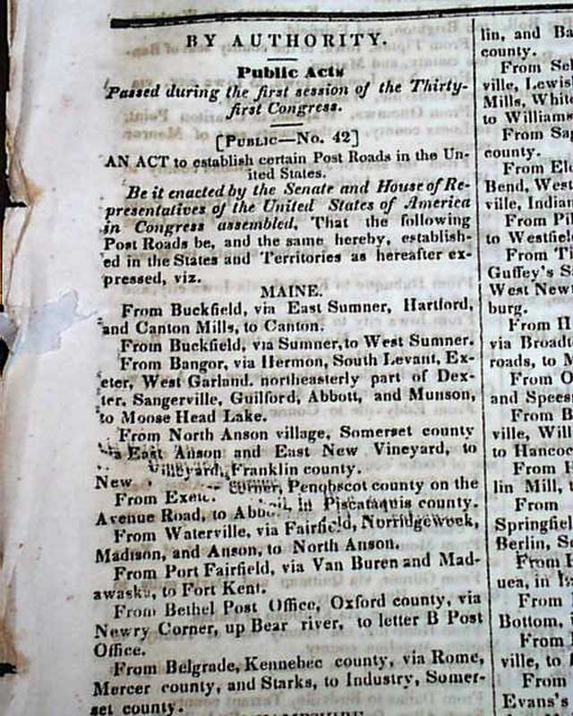 Pages 1 and 2 are entirely taken up with: "An Act to Establish Certain Post Roads in the United States" with considerable detail, state by state.