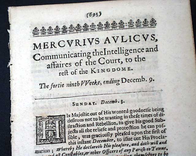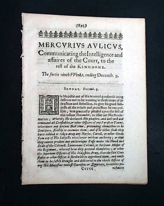 MERCURIUS AULICUS, Communicating the Intelligence and affaires of the Court, to the rest of the Kingdome. (Oxford), The fortie ninth Weeke, ending Decemb. 9 (December 2-9, 1643).
