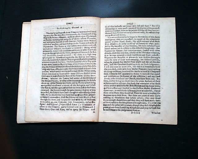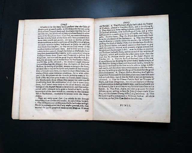 The Oxford imprint and the year of publication were never printed in this issue. But included are pages from the book 'The Beginnings of the English Newspaper 1620-1660' by Joseph Frank which not only verify this newsbook was published in Oxford, and that the first issue was January 1, 1643, but also provide nice commentary on the history of this title. Projecting forward from week one (January 1, 1643) it is easily determined this issue is December 2-9, 1643, and the datelines of the news reports give credence to this as well.