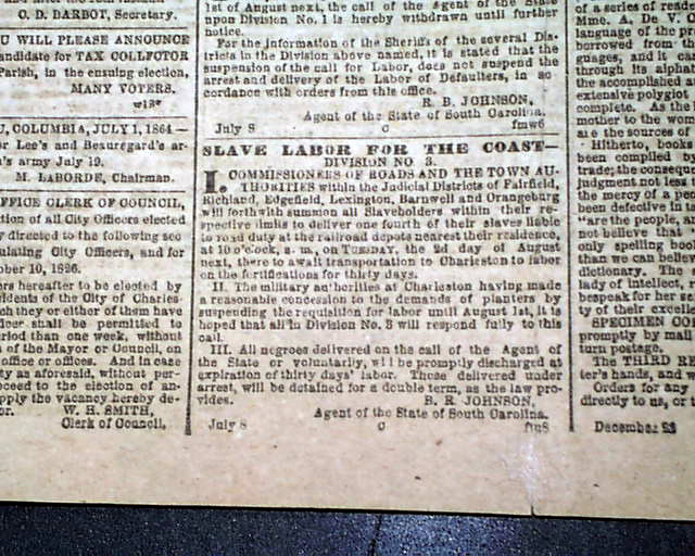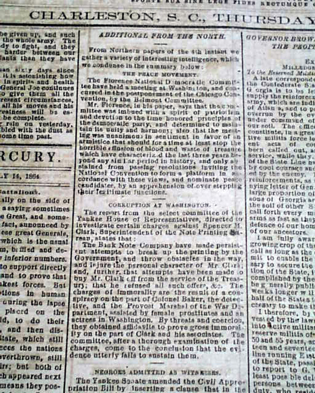THE CHARLESTON MERCURY, South Carolina, July 14, 1864