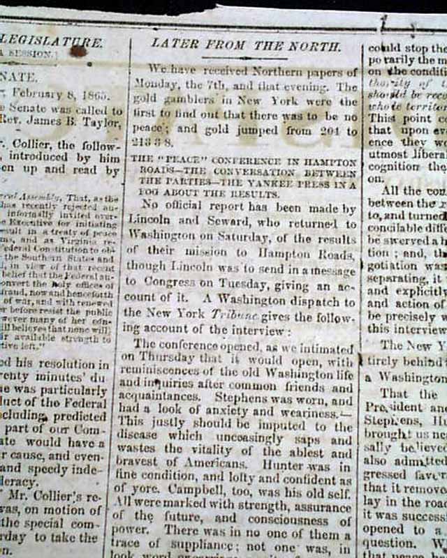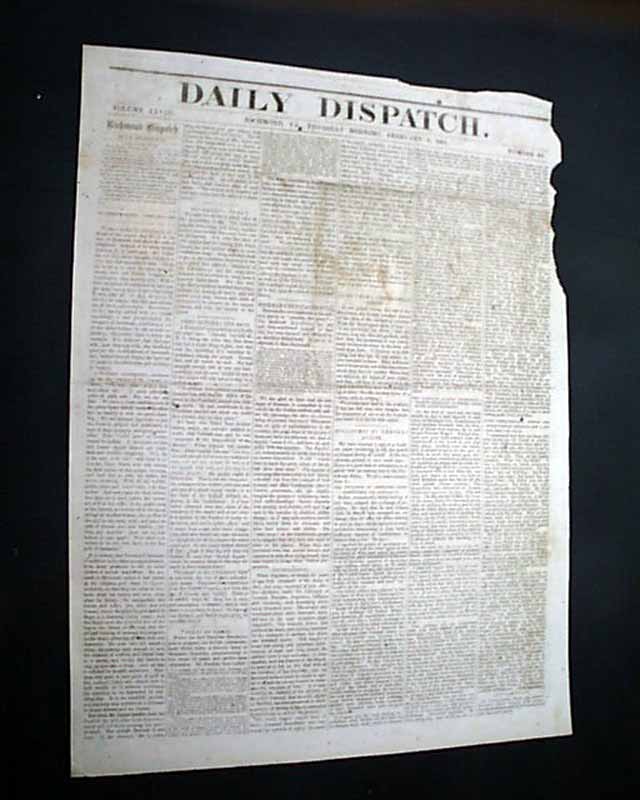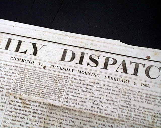 DAILY DISPATCH, Richmond, Virginia, Feb. 9, 1865 It is difficult to find Confederate newspapers from late in the war, such as this one.