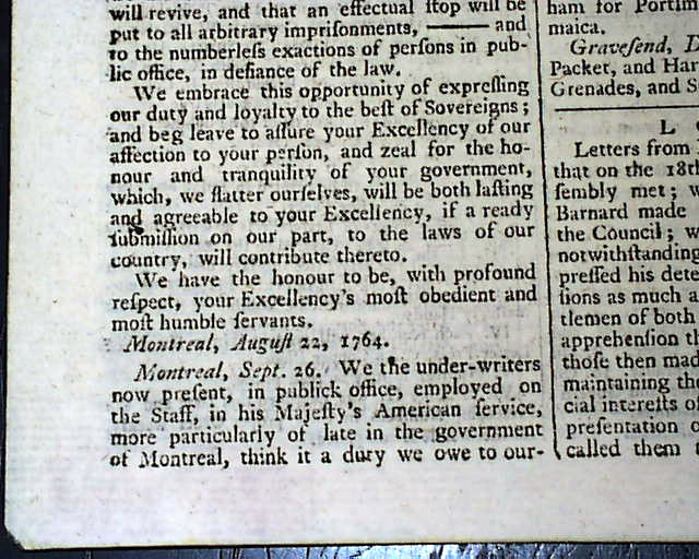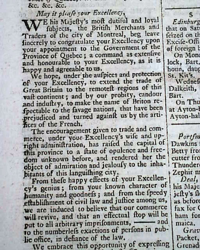 This is followed by a letter of congratulations from the British merchants & traders of Montreal, to the Hon. James Murray, recently installed as governor of Quebec.