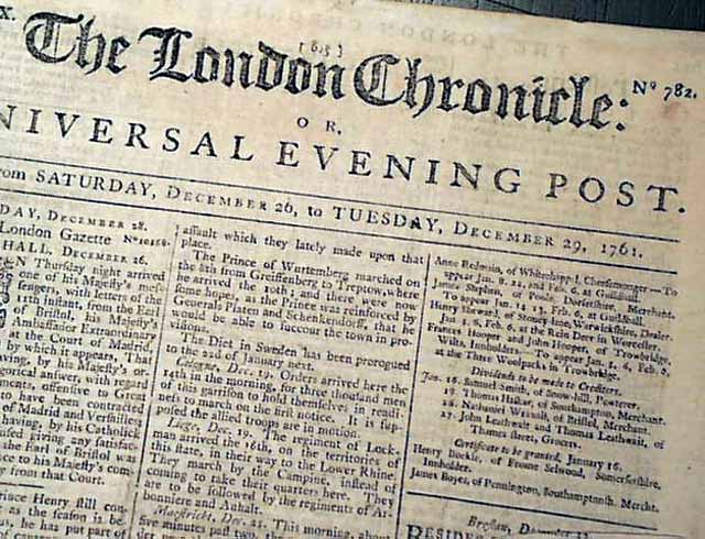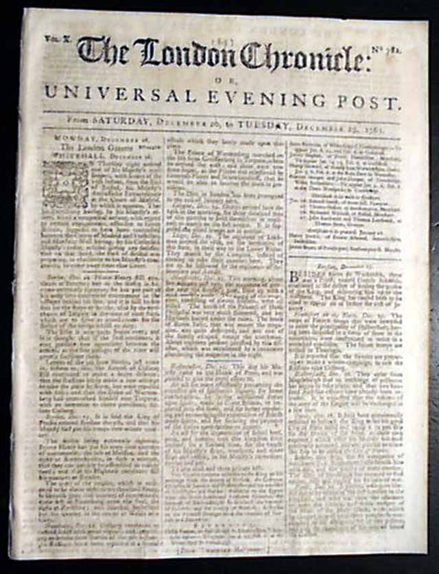 THE LONDON CHRONICLE, England, Dec. 29, 1761