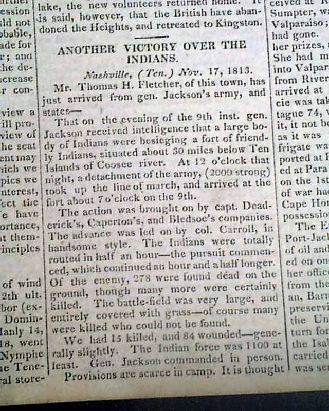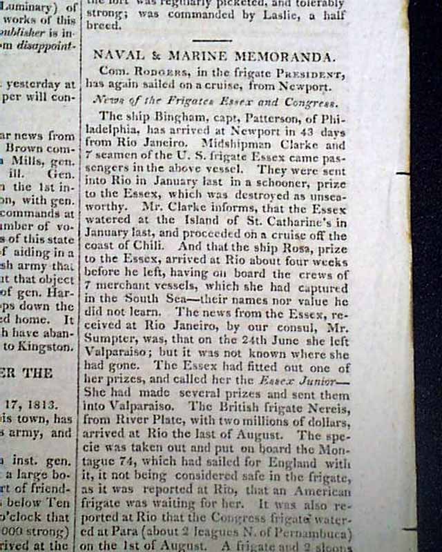 This is a fascinating, short-lived newspaper, having begun in 1812 for the exclusive purpose of reporting on the War of 1812 (hence the title) with no advertisements. When the war ended, so did this newspaper.