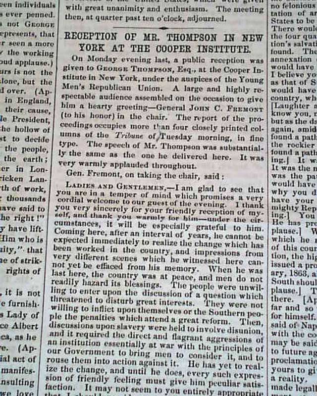 Page 3 also has: "Reception of Mr. Thompson in New York at the Cooper Institute" with several other articles on Thompson.