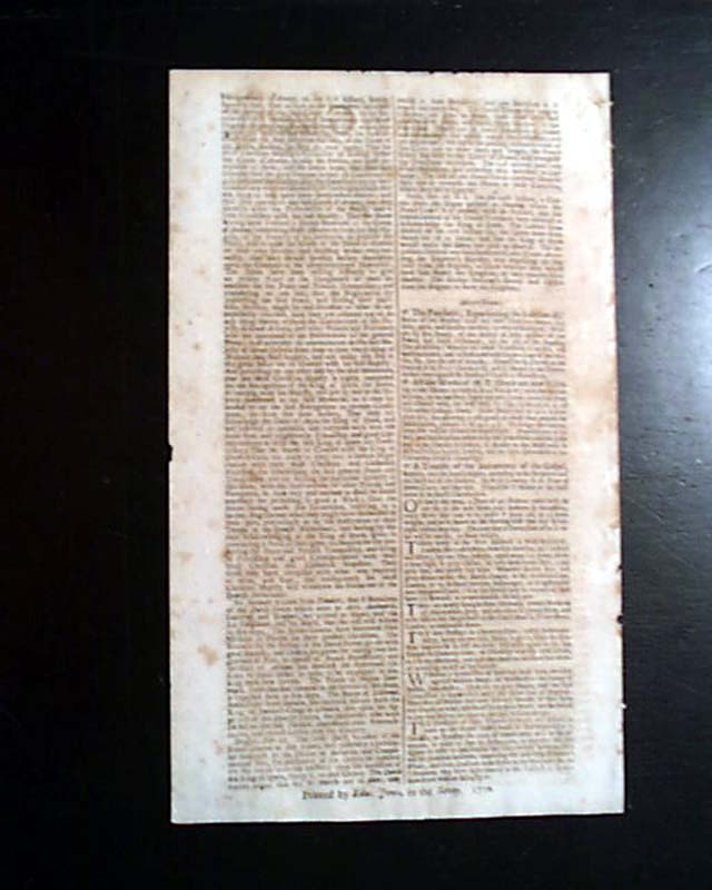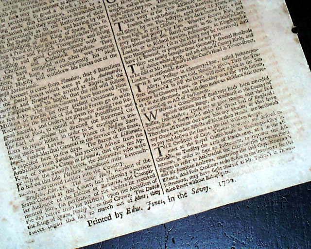 The issue is filled with various news of the day from various cities in Europe, each report with its own dateline, and even includes several "Advertisements" on the back page. Given its small size this would be a nice newspaper for framing & display with the 323 year old date prominent at the top. A little light foxing, nice condition.
