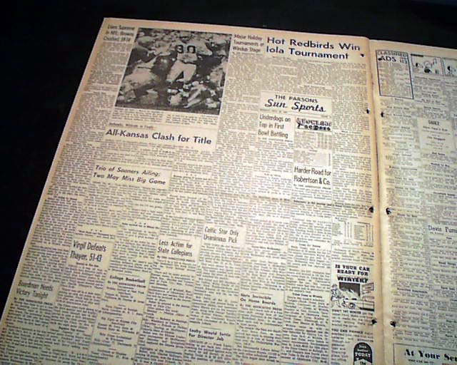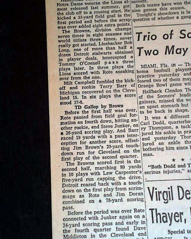 The top of page 12 has a one column heading: "Lions Supreme In NFL; Browns Crushed, 59-14" with related photo. (see images)