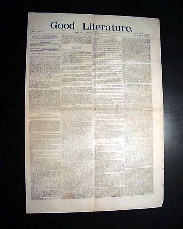 GOOD LITERATURE, New York, Feb. 12, 1881 The top of the front page notes: "Literary news, opinion, and choice endings." This is the volume 1, number 21 issue. This is the first of this title we have encountered.