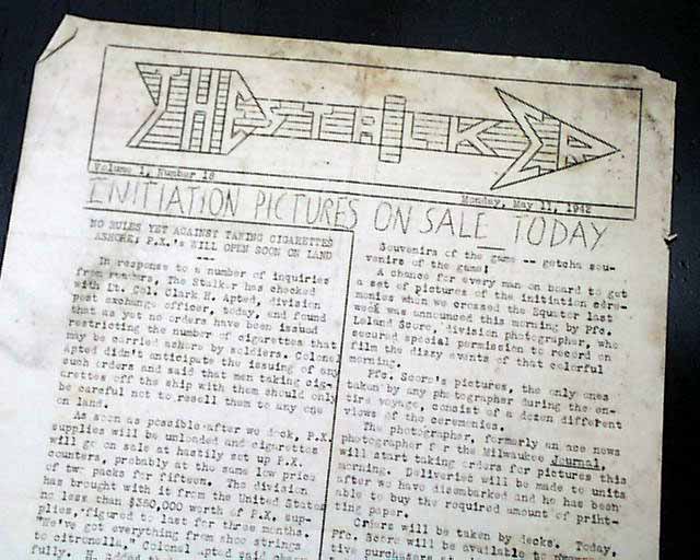 THE STALKER, May 11, 1942 There is very little information on this crudely produced newsletter. It looks very much like other "camp" newspapers produced on board ships during World War II for the benefit of the personnel on board. This is the volume 1, number 18 issue.