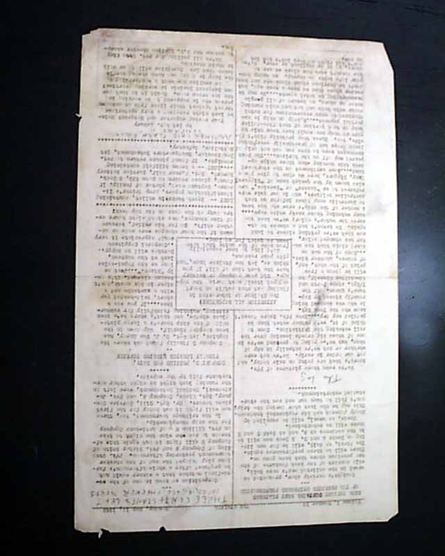 Complete as a single sheet issue, crudely produced on a typewriter & mimeograph machine, 8 1/2 by 12 3/4 inches, some light staining, good condition.