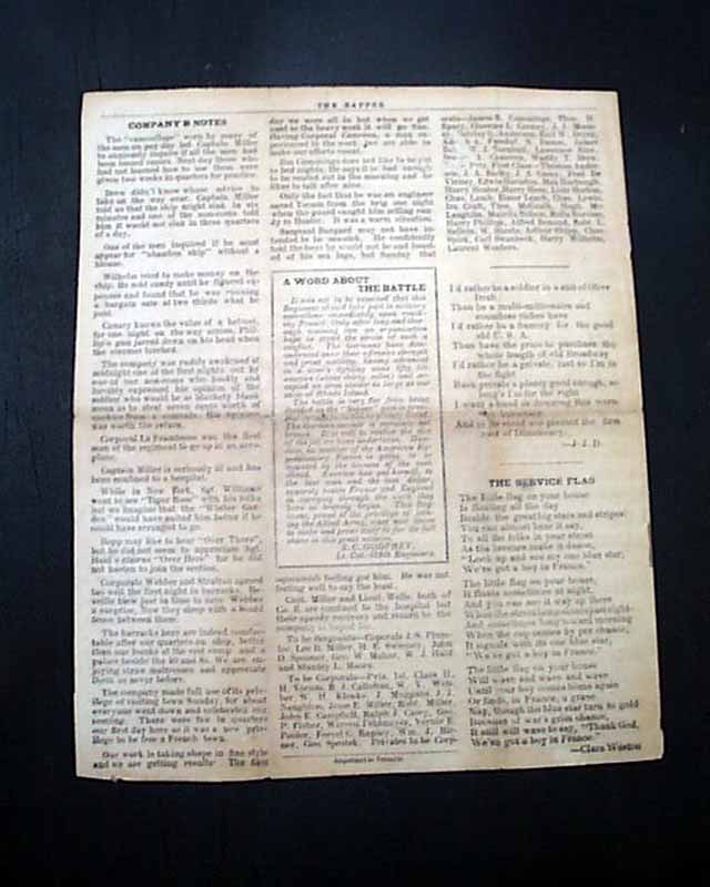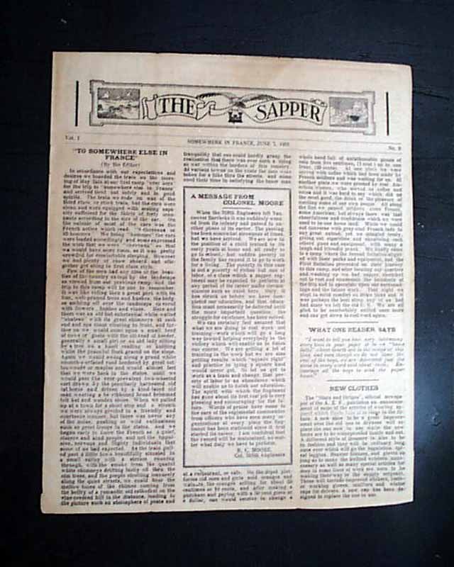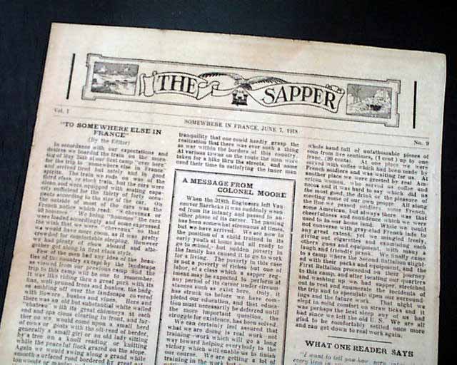 THE SAPPER, "Somewhere In France", June 7, 1918 This is a "camp" newspaper, one of many short-lived publications during wartime meant for military personnel in the region. This was: "Published twice a month by the enlisted men of the 318th Engineers." This is the volume 1, number 9 issue.