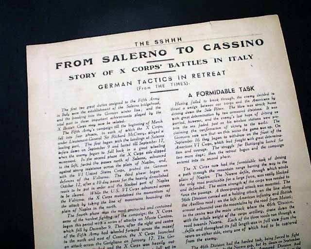 Articles include: "Spearhead Drive Through Brittany" 'Putting First Things First" "Eighth Cross The Arno" "Stop Press: Americans in Brest" with the entire back page taken up with: "From Salerno To Cassino - Story of X Corps' Battles In Italy - German Tactics In Retreat".