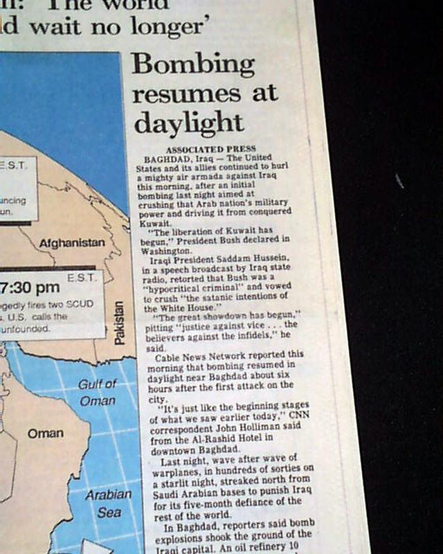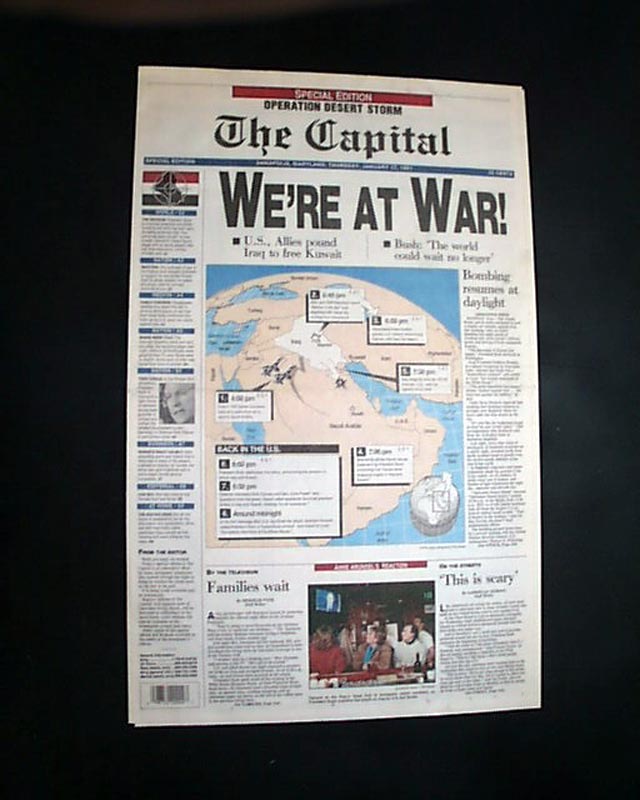 THE CAPITAL, Annapolis, Maryland, Jan. 17, 1991 Noted above the masthead: "Special Edition - Operation Desert Storm" with the headline proclaiming: "WE'RE AT WAR ! " with a map of the Iraq War vicinity.