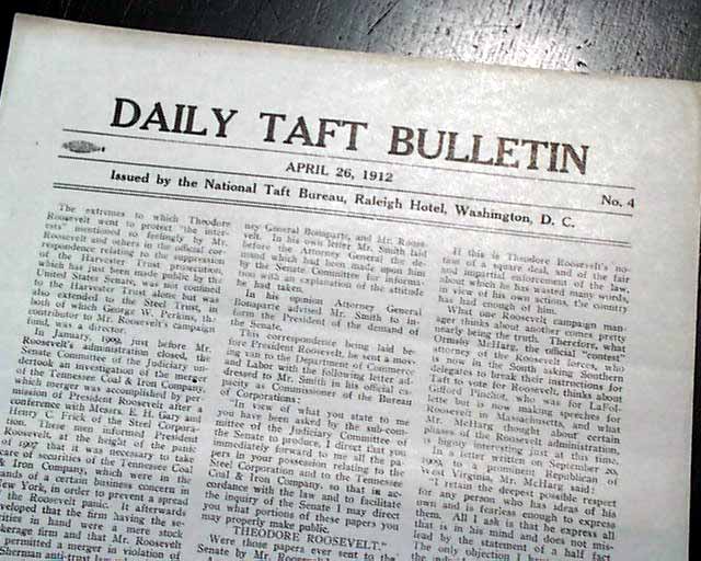 DAILY TAFT BULLETIN, Washington, D.C., April 26, 1912