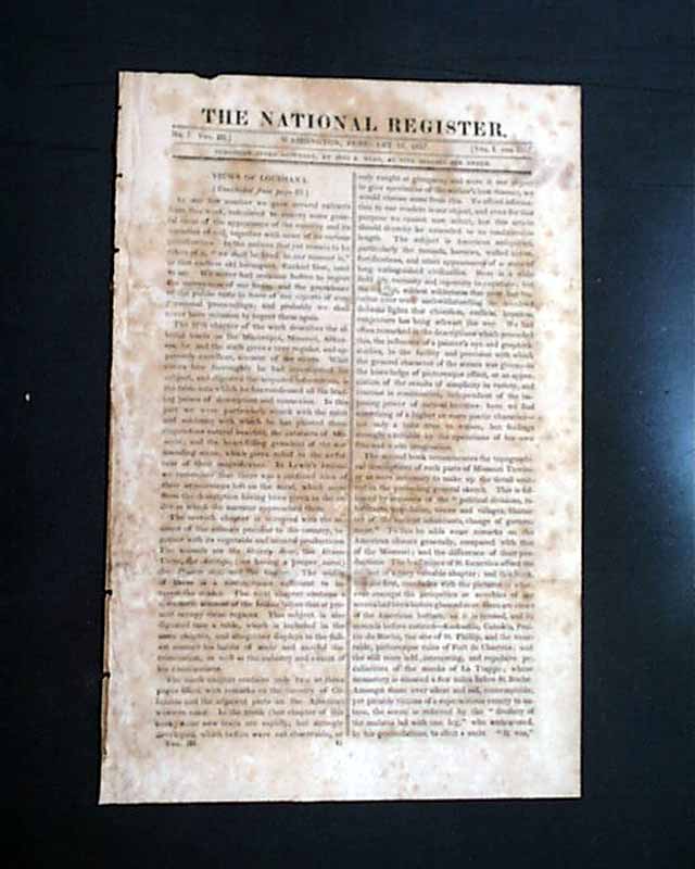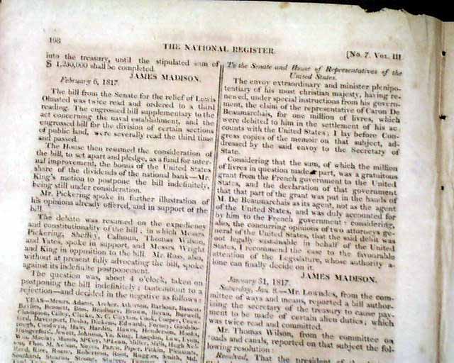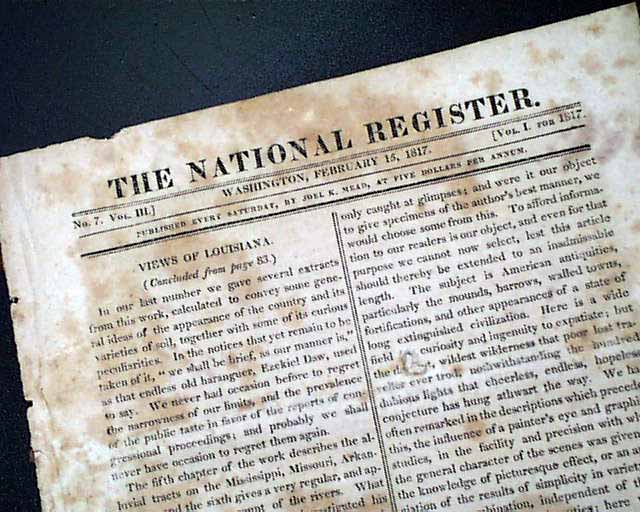 THE NATIONAL REGISTER, Washington, Feb. 15, 1817 An uncommon title that existed from March 2, 1816 thru Dec. 7, 1820. As the photos show the format was very much like the more popular 'Niles Weekly Register' which began in 1811, but not remotely as successful.