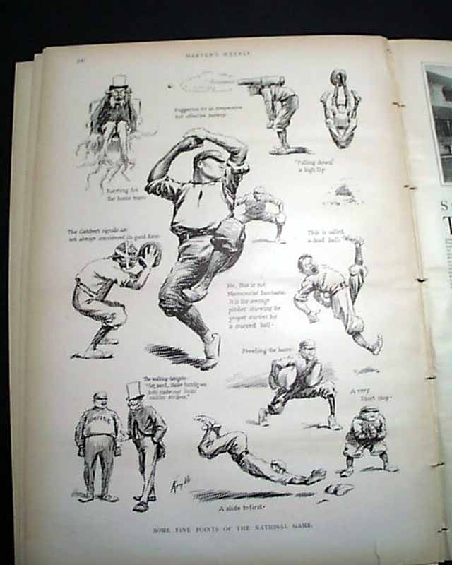 HARPER'S WEEKLY, New York, July 28, 1900  The prime feature would be the nice full page containing nine comic baseball prints captioned: "Some Fine Points of the National Game". A very displayable page on its own.