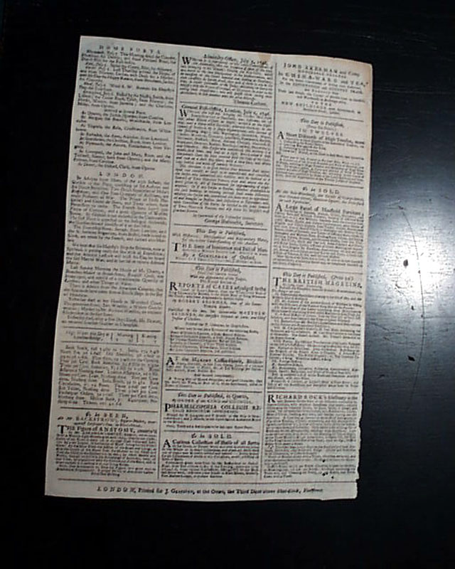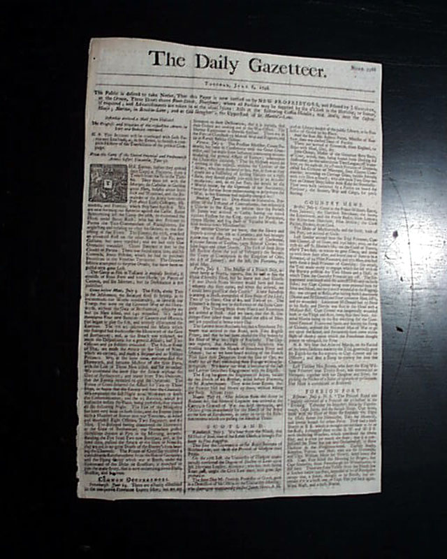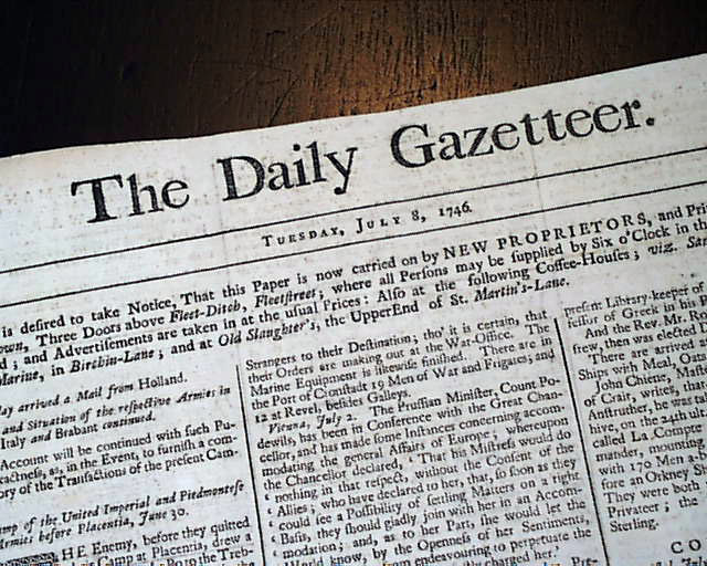 THE DAILY GAZETTEER, London, England, July 8, 1746 Various European reports throughout with advertisements on the back page. The front page has some items relating to the Jacobite Rebellion.