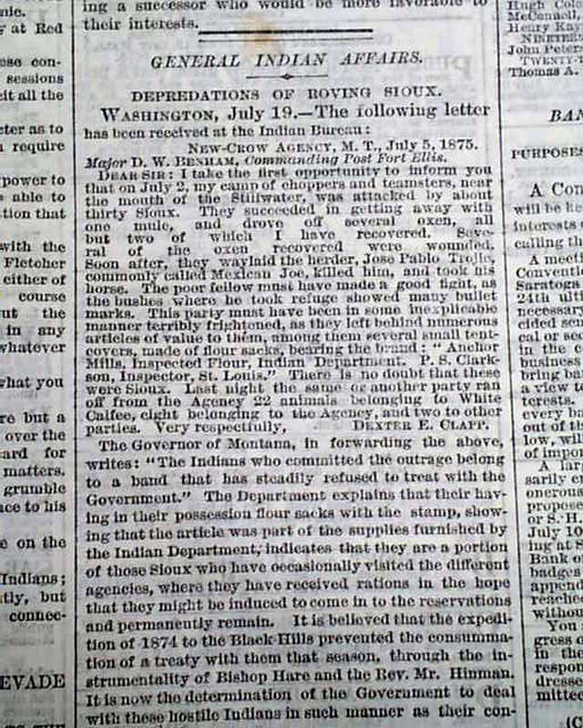 Also on the front page: "General Indian Affairs - Depredations of Roving Sioux" and: "The Sioux Agree To A Council".