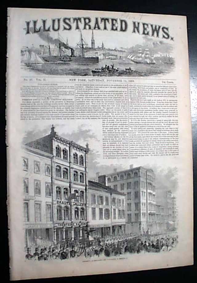 ILLUSTRATED NEWS, New York, Nov. 12, 1853 Formatted much like Harper's Weekly, but published 4 years previous to the more famous title. P.T. Barnum was a "Special Partner" in this publication as noted on one of the back pages.