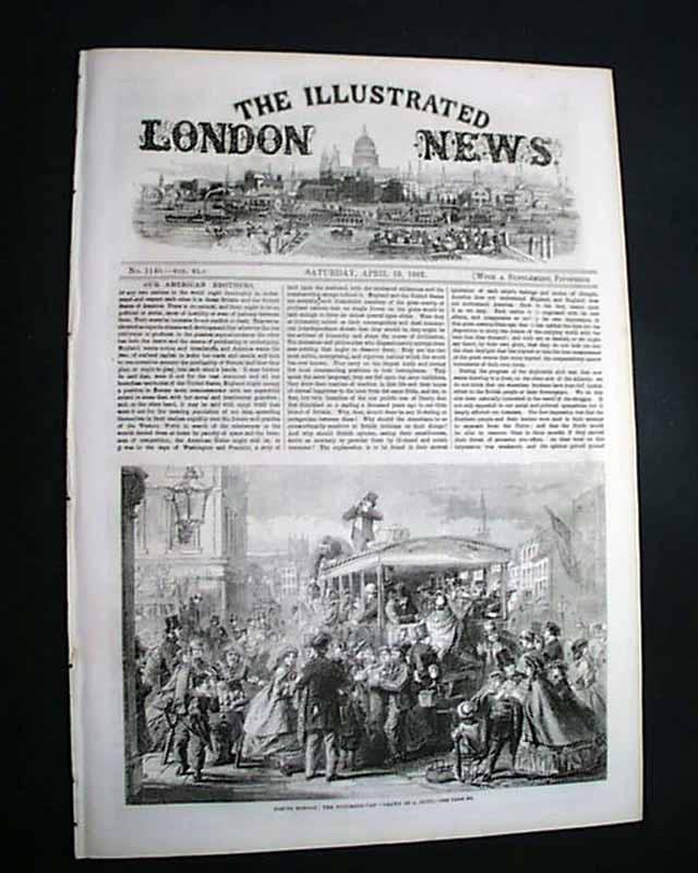 THE ILLUSTRATED LONDON NEWS, England, April 19, 1862 Inside has a nice full page print: "The Civil War In America: Reconnaissance Made by General Stonemason, Accompanied by the Comte De Paris and the Doc De Chartres, to Cedar Run".