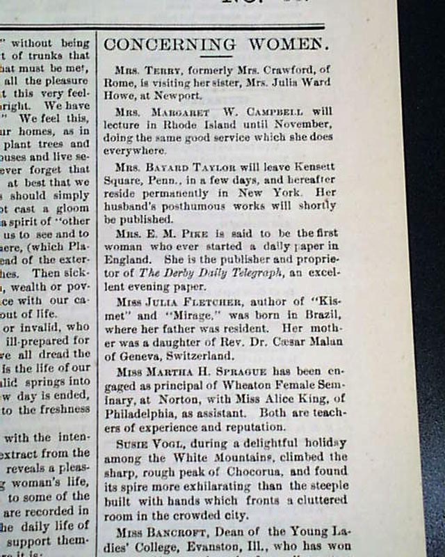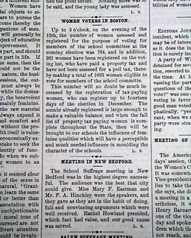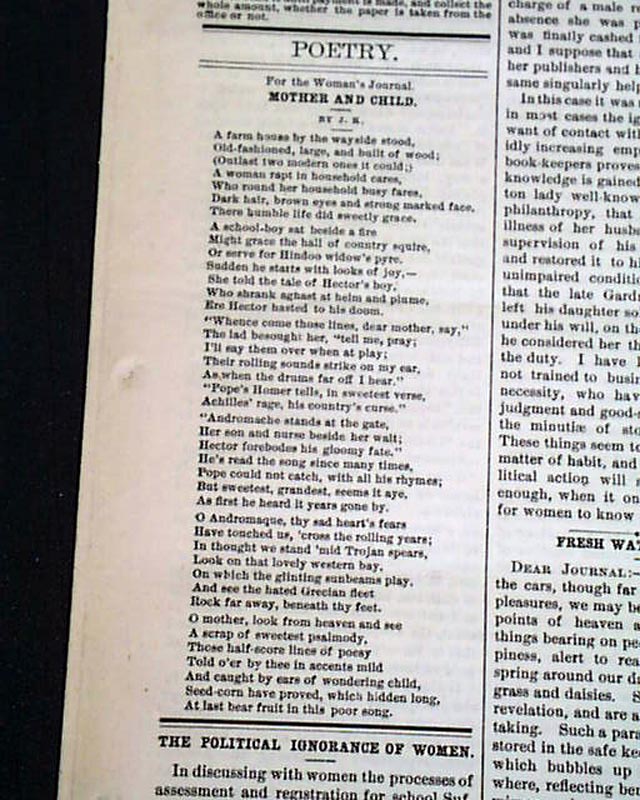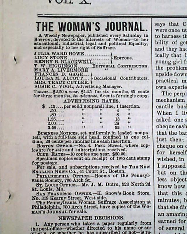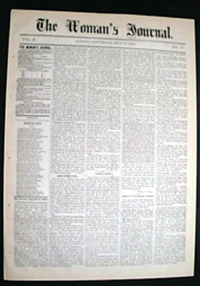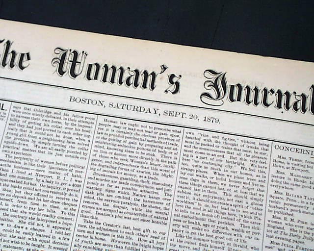 THE WOMAN'S JOURNAL, Boston, Sept. 20, 1879 Uncommon women's suffrage paper produced by--among others--Lucy Stone, Alice Blackwell, Julia Ward Howe, and Mary Livermore.