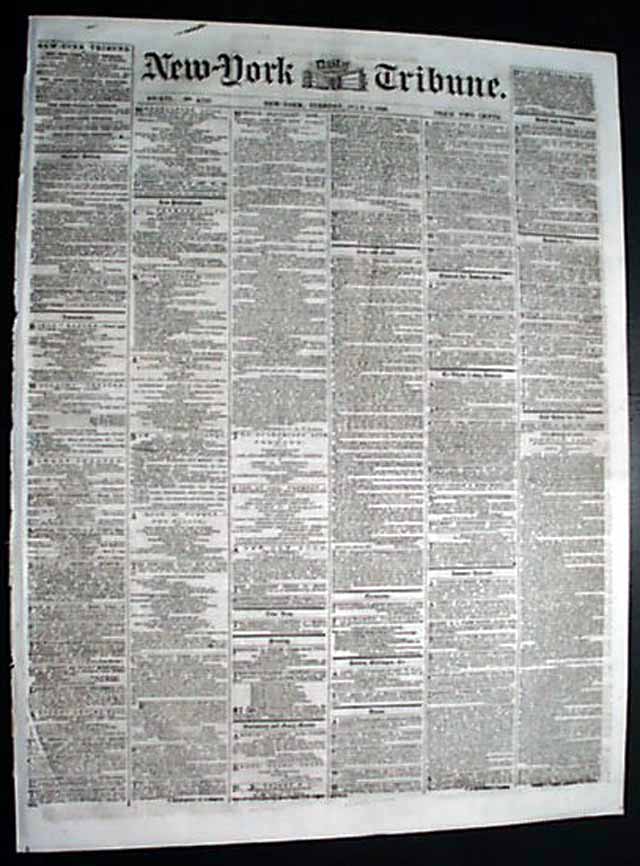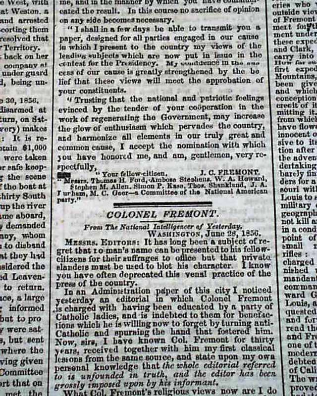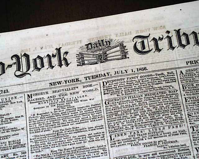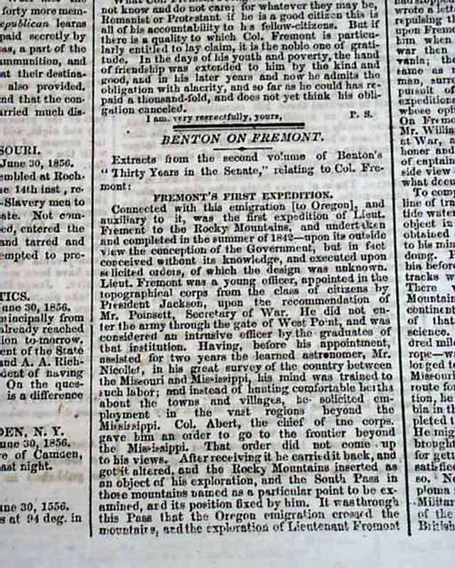 NEW YORK TRIBUNE, July 1, 1856 This issue has several reports concerning John C. Fremont as the Republican candidate for President and & the early days of his campaign for the office. The very first Republication Convention was just held several weeks prior.