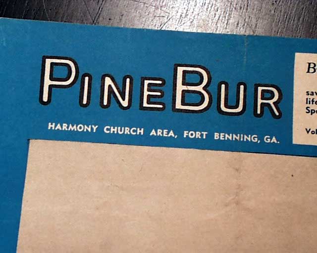 PINE BUR, Fort Benning, Georgia, Sept. 25, 1943 This is a "camp" newspaper printed: "...by and for Men of Basic Training Center..." during World War II. All military content, much like 'Stars & Stripes' but more localized.