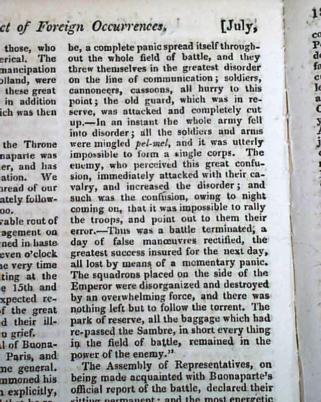 Certainly the most significant item in this issue is the detailed account of the Battle of Waterloo and the fall of Napoleon Buonaparte.