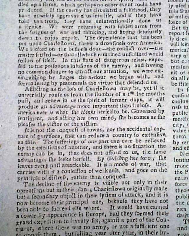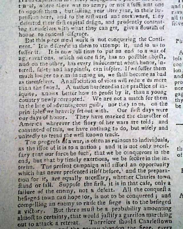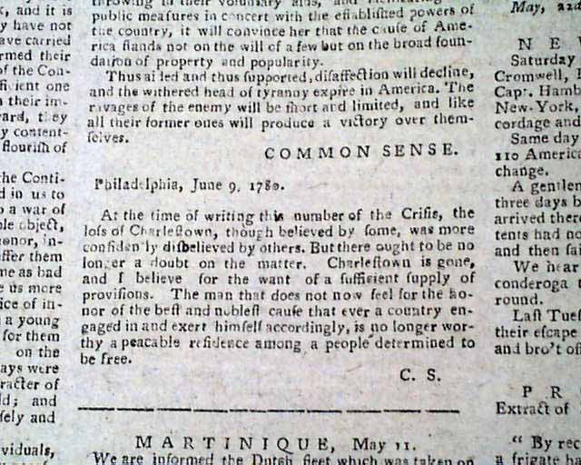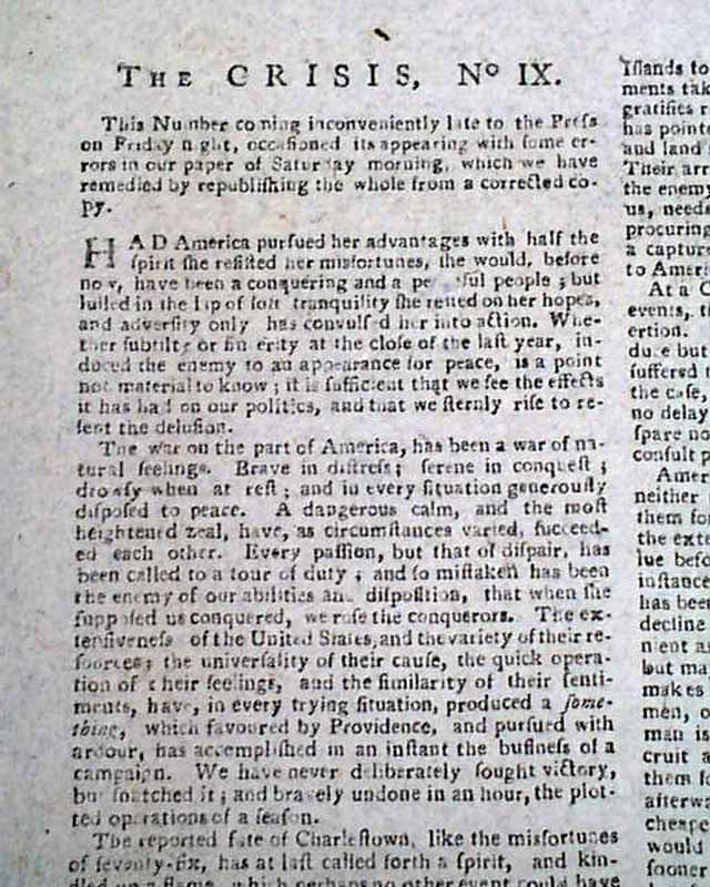 Over half of page 2 of this issue contains the complete text of "The Crisis, No. IX" of the series of 13 essays and is signed in type: Common Sense.