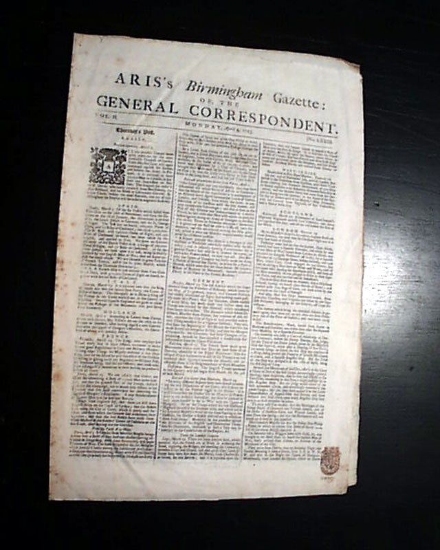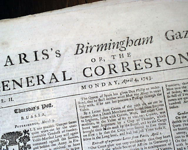 ARIS'S BIRMINGHAM GAZETTE: OR THE GENERAL CORRESPONDENT, England, April 4, 1743