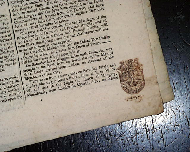 It is quite uncommon to find non-London newspapers from the U.K. from such an early date. The various news reports are almost entirely from Europe, plus various advertisements as well.