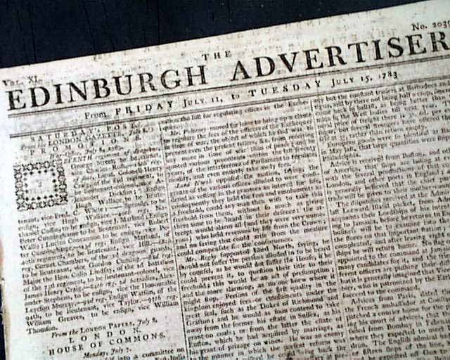 THE EDINBURGH ADVERTISER, Scotland, July 15, 1783
