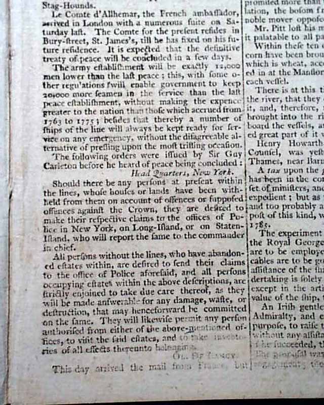 There is a letter from Sir Guy Carleton concerning those Loyalists remaining in New York.