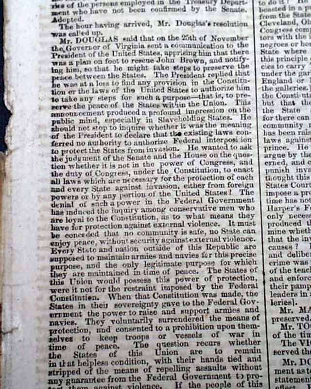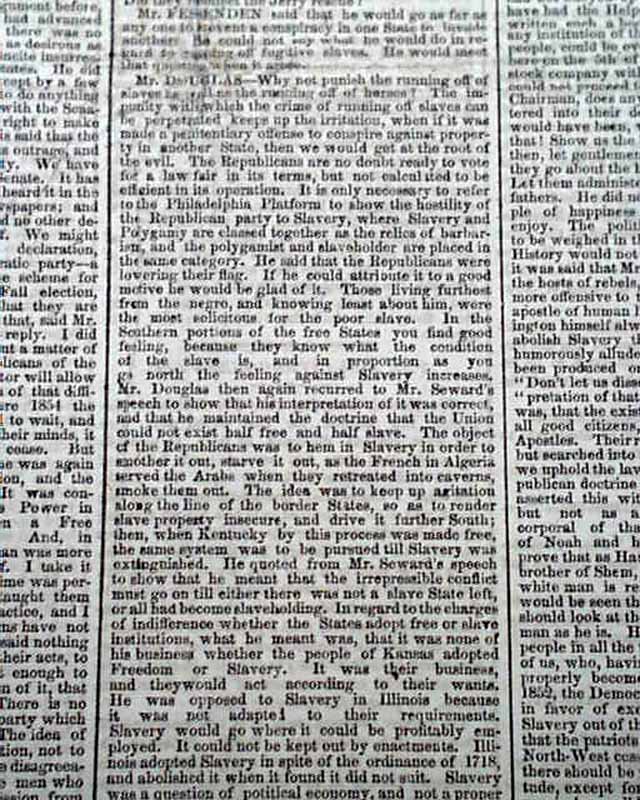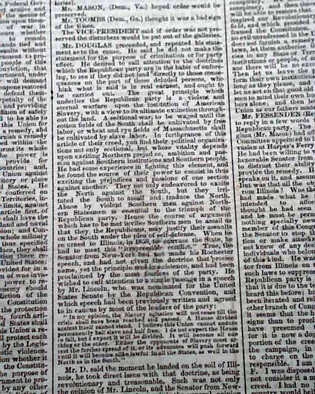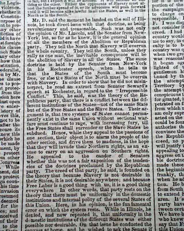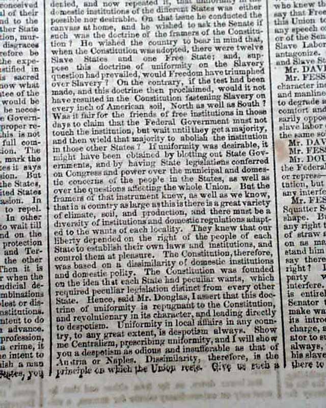 The front page is mostly taken up with great reporting from Congress, with considerable reporting on the words of Senator Stephen Douglas.