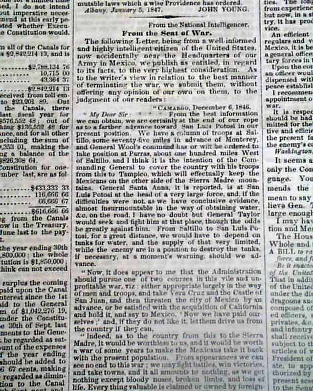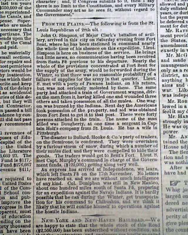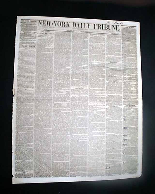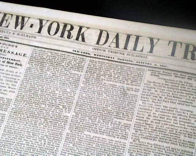 NEW YORK DAILY TRIBUNE, Jan. 6, 1847 The front page has: "Railroad to the Pacific--The Public Lands" which would not come to fruition until 1869. Also: "From the Seat of War" which on the Mexican War; and: "From the Plains" concerns the Pawnee Indians and more.