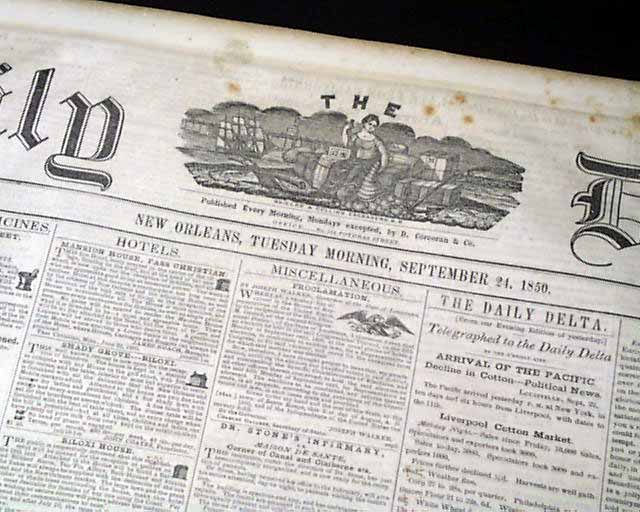 THE DAILY DELTA, New Orleans, Sept. 24, 1850 Newspapers from the pre-Civil War South are rather difficult to find. Here is one from Louisiana.