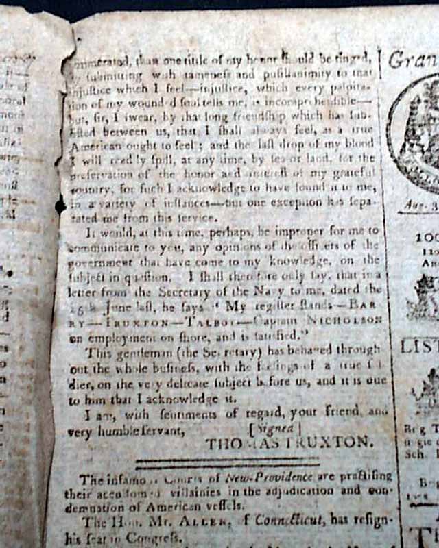 Page 2 has: "Capt. Truxton's Resignation" which is quite lengthy & signed by him in type: Thomas Truxton.