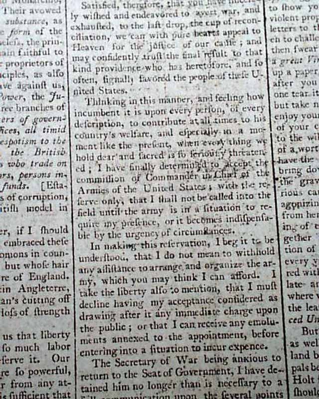 Washington accepts the position of Commander-in-Chief of the Army...