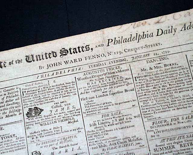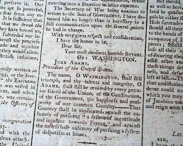 GAZETTE OF THE UNITED STATES & PHILADELPHIA DAILY ADVERTISER, Jan. 22, 1799 Certainly the most notable item is the page 3 letter signed in type: Go. Washington, in which he accepts the position of Lt. General and Commander-In-Chief of the United States Army.