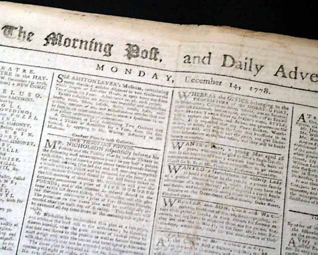 THE MORNING POST & DAILY ADVERTISER, London, Dec. 14, 1778
