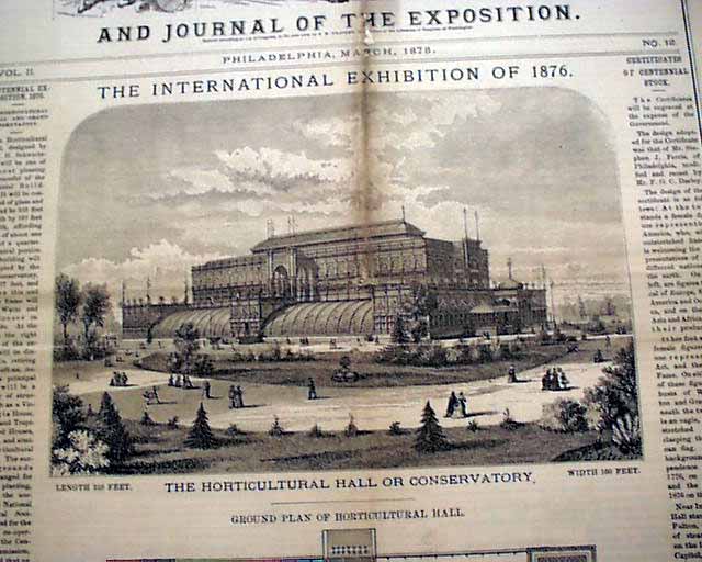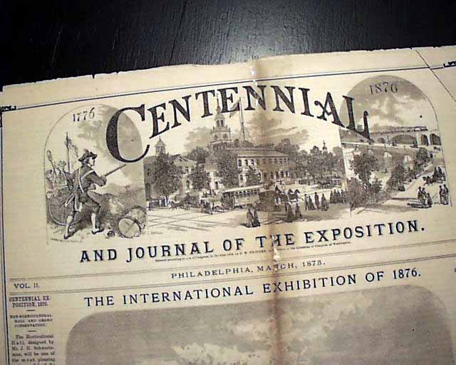 CENTENNIAL AND JOURNAL OF THE EXPOSITION, Philadelphia, March, 1875 This was a short-lived newspaper that began in April, 1873, "...the first newspaper exclusively devoted to the great project of the celebration of the hundredth anniversary of the political life of our country...".
