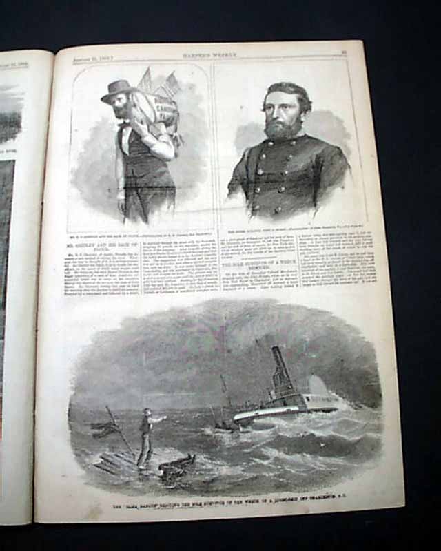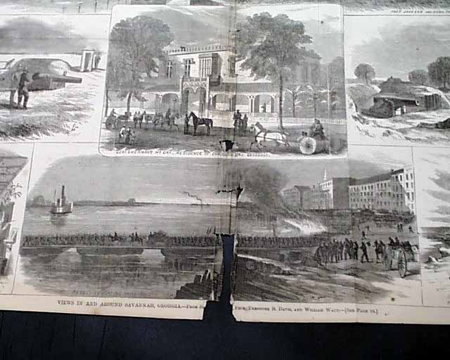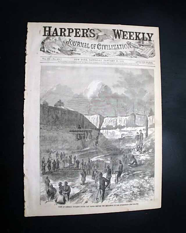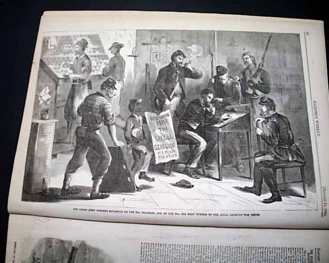 HARPER'S WEEKLY, New York, Jan. 21, 1865  The full front page is a: "View of General Butler's  Dutch Gap Canal Before the Explosion of the Bulkhead". Inside has a full page print: "The Union Army Entered Savannah on the 21st December and on the 24th the First Number of the 'Loyal Georgian' Was Issued."