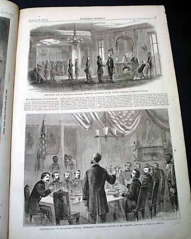 Other prints include: "New Year's Day in Savannah--General Sherman's Reception at Mr. Green's" "Christmas-Day in Savannah--General Sherman's Christmas Dinner at Mr. Green's" "The Late Edward Everett" "Rear View of the Howlett House Battery as Seen From Our Advance Picket Line" "The Ne Water-Works at Chicago, Illinois" which includes 4 prints.
