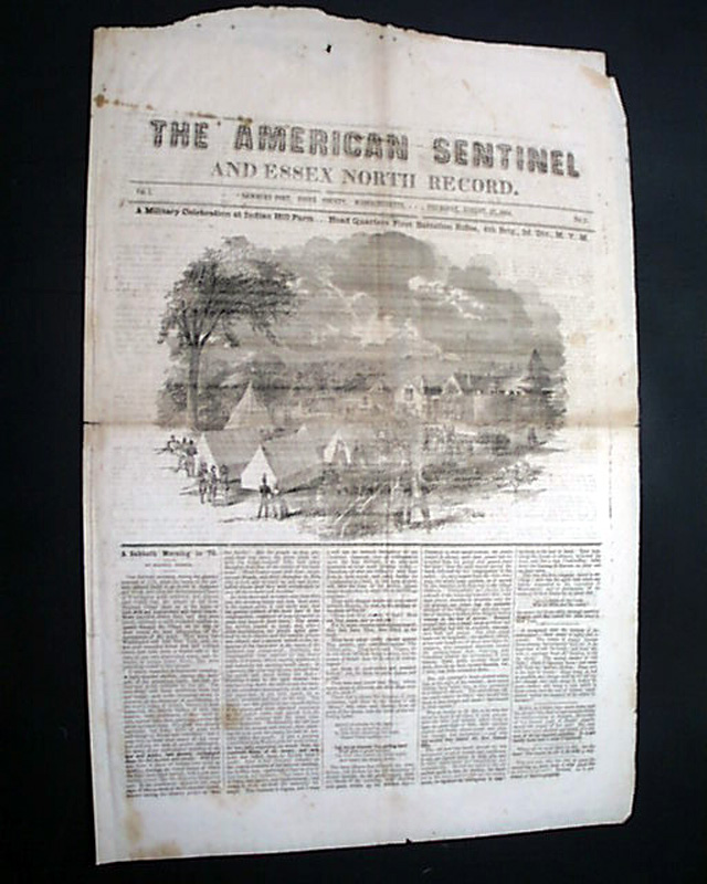 THE AMERICAN SENTINEL AND ESSEX NORTH RECORD, Newburyport, Massachusetts, Aug. 17, 1854 This is the volume 1, number 2 issue of a rare title that existed for just six months.