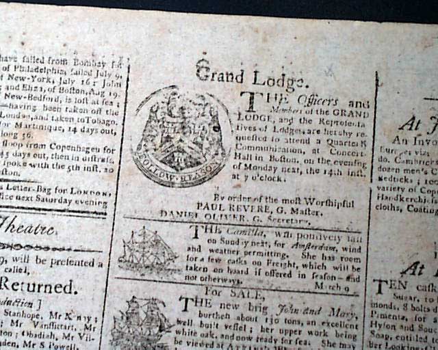 Page 3 has a Masonic notice for the "Grand Lodge" which is signed in type by the Grand Master: Paul Revere.