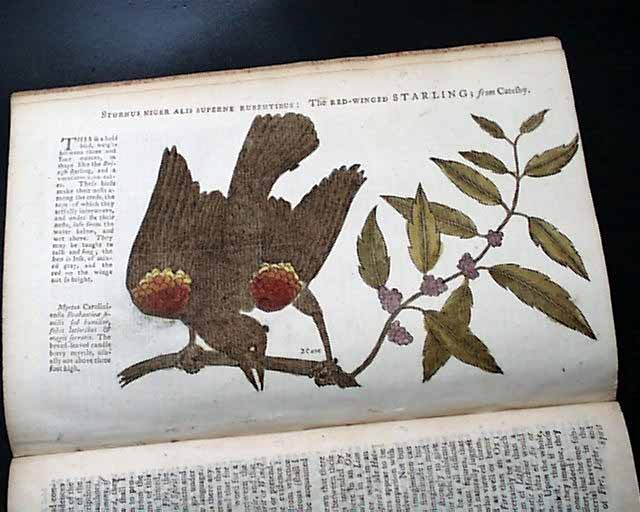 An additional full page print shows seashells, and a very nice (and typically missing) plate shows: "The Red Winged Starling, from Catsby" which is hand-colored and has descriptive text.